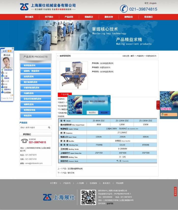 展仕機(jī)械主營(yíng)業(yè)務(wù)可分為三大類:全自動(dòng)吸塑成型機(jī)、全自動(dòng)厚板材吸塑成型機(jī)生產(chǎn)線、高頻熔接機(jī)等;產(chǎn)品廣泛應(yīng)用于吸塑包裝,電子,精密注塑,汽車零部件、衛(wèi)浴潔具,箱包燈飾,廣告標(biāo)牌,器械(電器)外殼及內(nèi)膽、托盤襯墊以及醫(yī)療和玩具等塑料制品的加工與生產(chǎn)。公司同時(shí)還可為客戶提供生產(chǎn)配套所需的各種原材料及精密鋁合金模具定制服務(wù).