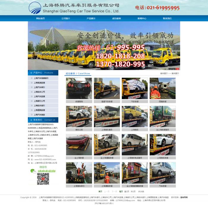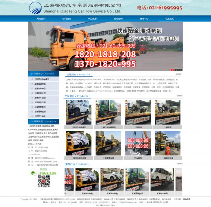 上海橋騰汽車牽引服務有限公司是上海汽車牽引協會會員單位!服務熱線:021-61-995-995,18201818208。 本公司主要經營汽車牽引、汽車救援、地庫、陷坑困境救援、故障救援、搭電、換胎、代交保險、代辦檢車、酒后代駕、新車駁運一體的專業化汽車救援公司。本公司現有清障車大、中、小型數百輛,搶修車幾十輛。目前服務區域有:長江隧橋、東海大橋、滬蘆高速、申嘉湖高速、沈海高速、滬常高速、滬翔高速、北環、東環、市區地面道路。只要您一個電話,一呼百應!