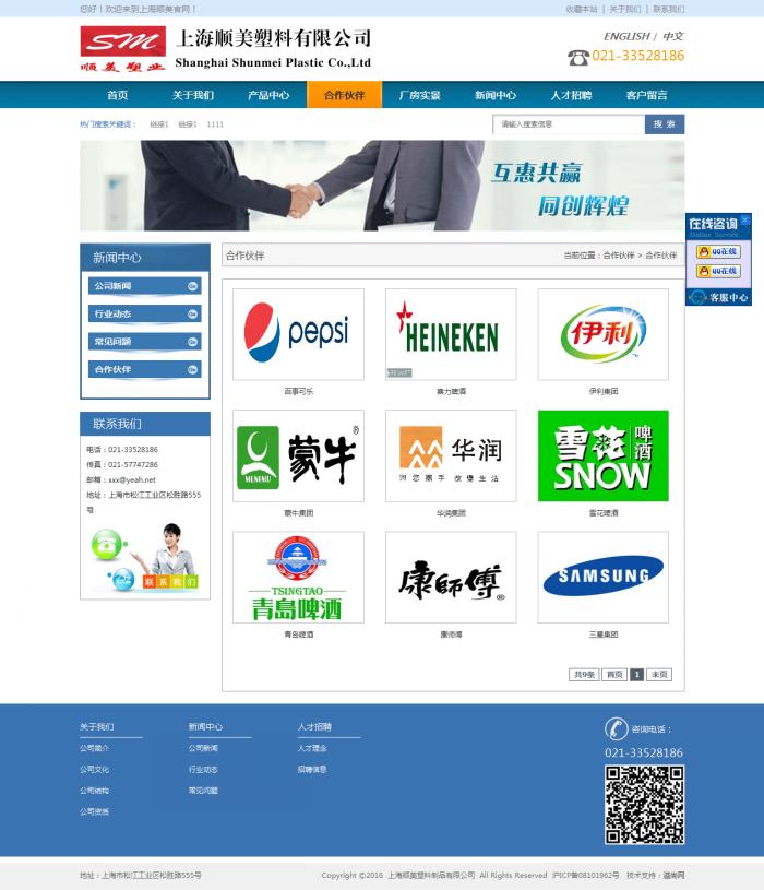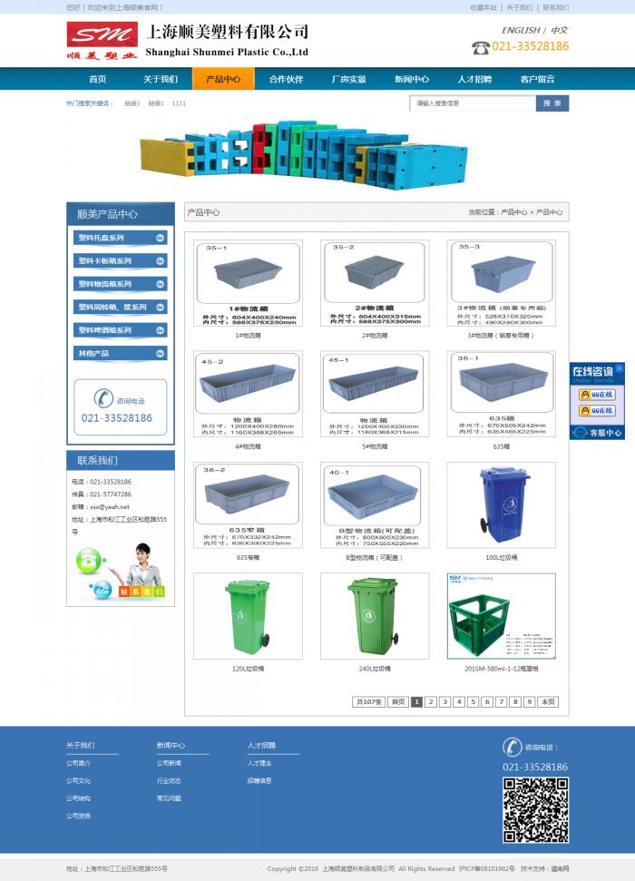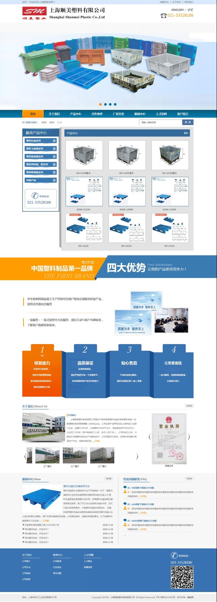 上海順美塑料制品有限公司是生產各種規格塑料托盤及各種塑料制品(如啤酒箱和物流周轉箱等)的專業企業。公司坐落于世界知名的上海市松江東部工業區,創建于2003年,占地面積20000平方米,現有固定資產8000萬元,從業員工200名(其中高級技工12名、技術人員27名)。公司自成立以來,大膽的引進德國先進的生產設備和技術,以市場需求為導向,運用科學的配方指導生產作業,憑著優良的技術及誠信的理念,以高技術含量、高質量品位為標準。