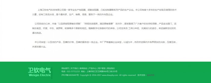 上海衛(wèi)欽電氣科技有限公司是一家專業(yè)生產(chǎn)電阻器、頻敏變阻器、凸輪控制器等系列產(chǎn)品的生產(chǎn)企業(yè)。本公司有著十多年的生產(chǎn)經(jīng)驗及雄厚的技術(shù)力量,設(shè)有三條流水線,是個集科研、生產(chǎn)、銷售、信息、服務(wù)于一體的外向型企業(yè)。公司自創(chuàng)辦以來,本著“以品質(zhì)換取顧客的信賴”“持續(xù)改進(jìn)提高,滿足顧客需要” 的方針,逐漸贏得了廣大客戶的支持和信賴,產(chǎn)品走出國門、遠(yuǎn)銷東南亞、印度、中東、俄羅斯、歐美等多個國家和地區(qū)。隨著數(shù)字化信息時代的來臨,公司全體員 工將以年輕、充滿活力的姿態(tài),來迎接新世紀(jì)的機(jī)遇與挑戰(zhàn)。