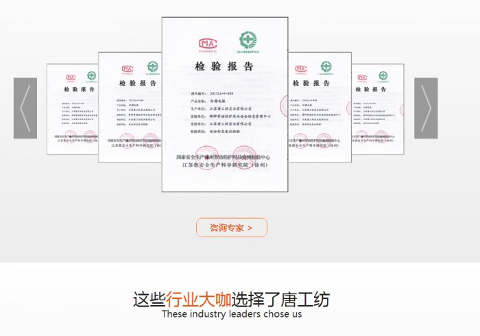 唐工紡運(yùn)用國內(nèi)外先進(jìn)的生產(chǎn)管理技術(shù);利用公司所建立的實(shí)驗(yàn)室的設(shè)備資源;采用的Tangwear系列面料在防蟲防螨、防污防水、色牢度、耐光性、耐油污、耐氯、耐高溫隔熱、隔音降噪、耐紫外線、防靜電、阻燃隔熱、防酸堿、防電弧、防電磁輻射、防核輻射等方面,符合ISO標(biāo)準(zhǔn)、美國工裝標(biāo)準(zhǔn)、歐洲工裝標(biāo)準(zhǔn)、澳大利亞工裝標(biāo)準(zhǔn)和中國國家標(biāo)準(zhǔn)(經(jīng)BTTG、TUV、SGS、ITS、BV、IAWAT和國家勞動保護(hù)用品質(zhì)量監(jiān)督檢驗(yàn)中心(北京)、國家安全生產(chǎn)北京勞動防護(hù)用品檢測檢驗(yàn)中心、廣東省微生物分析檢測中心、華東國家計(jì)量測試中心等國家權(quán)威檢測機(jī)構(gòu)的嚴(yán)格檢測)。