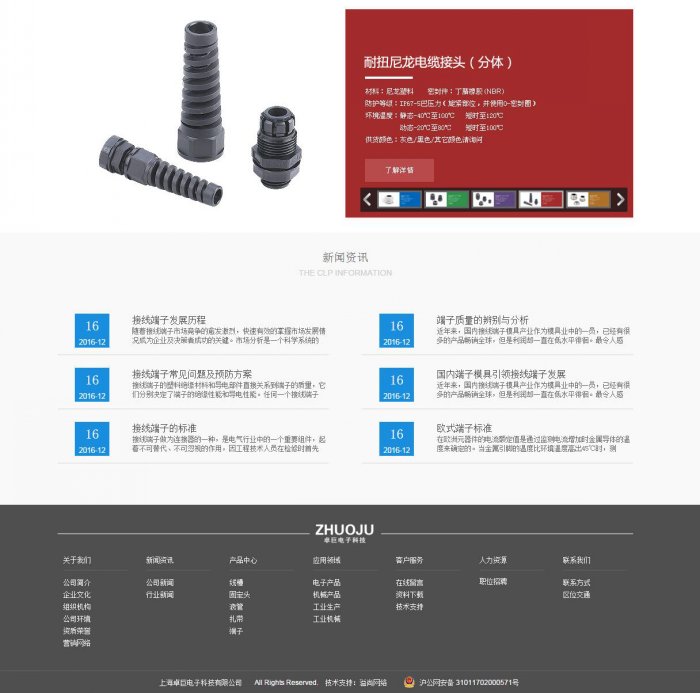 上海卓巨電子科技有限公司是一家生產(chǎn)各種規(guī)格系列的電線連接器(電纜接頭、線配器材)的專業(yè)公司,公司集科研、生產(chǎn)和銷售為一體的綜合性現(xiàn)代化企業(yè),公司一直貫徹質(zhì)量為中心的原則,并且嚴格按照ISO9001國際質(zhì)量管理體系的標準和管理模式進行管理和生產(chǎn)。公司產(chǎn)品廣泛應(yīng)用于電子,機械,電氣成套等工業(yè)領(lǐng)域,產(chǎn)品遠銷東南亞等發(fā)達國家,因產(chǎn)品其精湛的工藝和優(yōu)異的品質(zhì),已得到國內(nèi)各大集團公司和國際客戶的公認和好評。