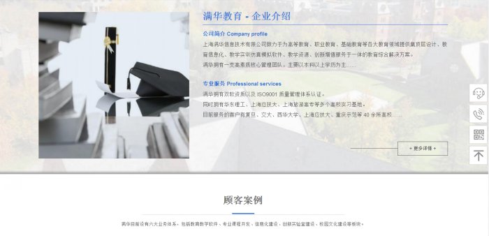 上海滿華信息技術有限公司致力于為高等教育、職業教育、基礎教育等各大教育領域提供集頂層設計、教育信息化、教學實訓仿真模擬軟件、教學資源、創新增值服務于一體的教育綜合解決方案。