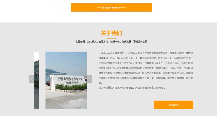 上海華汕實業有限公司于一九九五年首家成立于松江富榮經濟開發區,是集建材商貿、建筑裝潢及建材生產與一體的綜合性企業,生產基地占地面積15000平方米,生產車間6000平方米,投資乳膠漆和裝飾漆生產近千萬元。采用良好設備和流水線生產,企業盡心盡力,為客戶提供符合需求的產品。與多家合作伙伴共同努力,推出出新一代綠色建材—FEIAL-KING-PAINT 德獅牌系列高級內外墻乳膠漆和木器裝飾漆,隨市場的不斷需求,公司的產品系列拓展,開發水性環氧工業用地坪漆與金屬納米抗指紋油系列產品,受廣大新老客戶的使用,奉獻給廣大消費者。