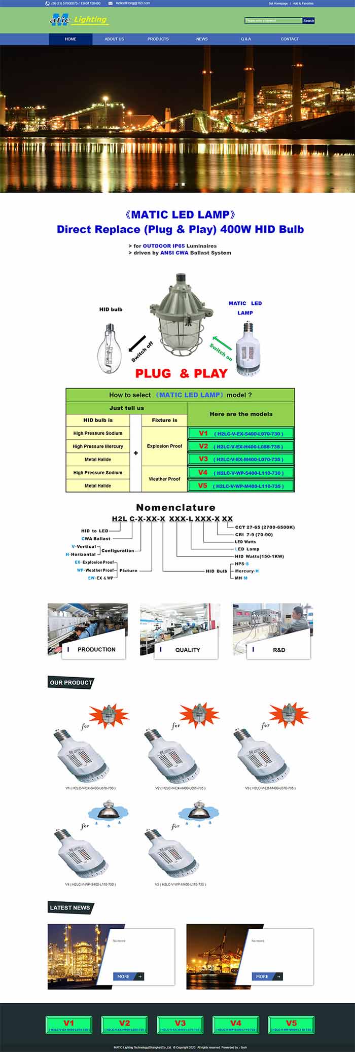 公司簡介:MATIC (Shanghai) Lighting Technology Co., Ltd. A solely foreign-owned enterprise was founded in 2005 by an Chinese American Mr. Kellent Hong.