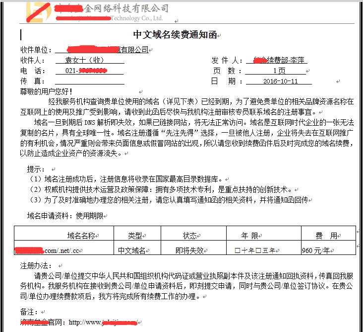 1.最近有很多客戶反應收到了中文域名到期的續費通知,如果您之前沒有買過中文域名就不存在續費的說法,他們所謂的續費通知是讓您重新購買一些沒用的中文域名,然后一次性買10年或20年,當然價格也是比較高的,若您收到了相關續費通知請與我們核實;