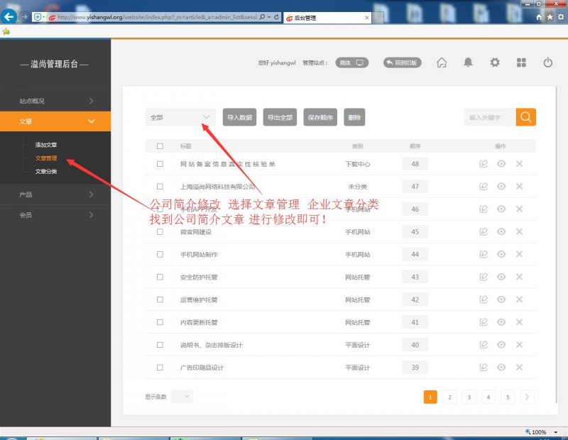 5.公司簡(jiǎn)介修改,點(diǎn)擊文章管理,找到公司簡(jiǎn)介文章,然后進(jìn)行修改即可