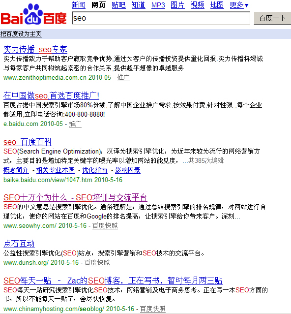 2、如果這個(gè)關(guān)鍵詞的搜索結(jié)果網(wǎng)站排在第一頁,甚至第二頁里的網(wǎng)站全都是使用首頁來做的優(yōu)化,那么我們也可以知道,這個(gè)關(guān)鍵詞的競爭性很強(qiáng),反之: 在SEO實(shí)戰(zhàn)操作中,如果你要優(yōu)化某個(gè)關(guān)鍵詞,你發(fā)現(xiàn),在百度或是GOOGLE搜索結(jié)果中,這個(gè)關(guān)鍵詞的前幾名網(wǎng)站都是用欄目頁或者是內(nèi)容頁來做的優(yōu)化, 那么,你只要用首頁來做這個(gè)關(guān)鍵詞,相應(yīng)的,能夠獲得好排名的機(jī)率就相對提高,并且速度加快。